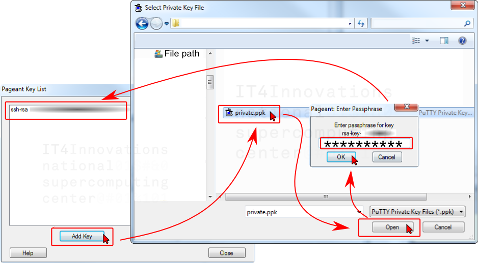 - Enter passphrase for selected private key file if Pageant SSH authentication agent is not used.
