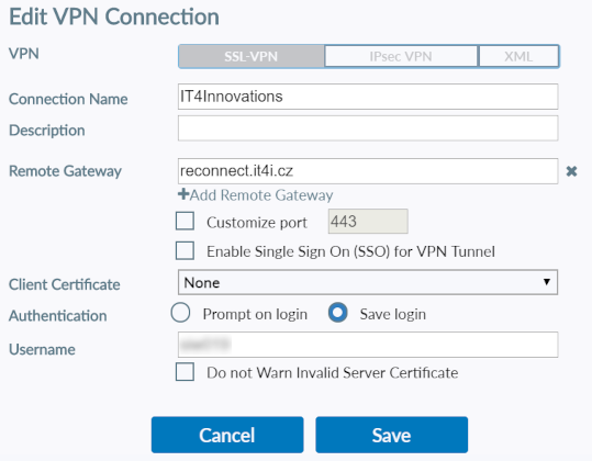Optionally, you can describe the VPN connection and select Save Login under Authentication.