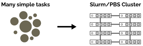 HyperQueue lets you build a computation plan consisting of a large amount of tasks and then execute it transparently over a system like SLURM/PBS. It dynamically groups tasks into Slurm jobs and distributes them to fully utilize allocated nodes. You thus do not have to manually aggregate your tasks into Slurm jobs.