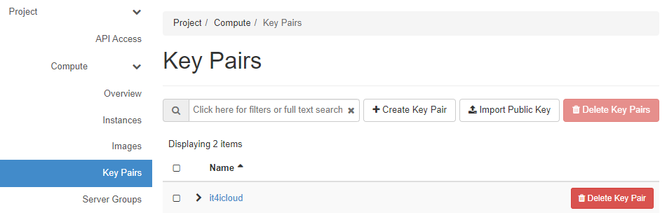 1. Go to Project > Compute > Key Pairs and click the Create Key Pair button.