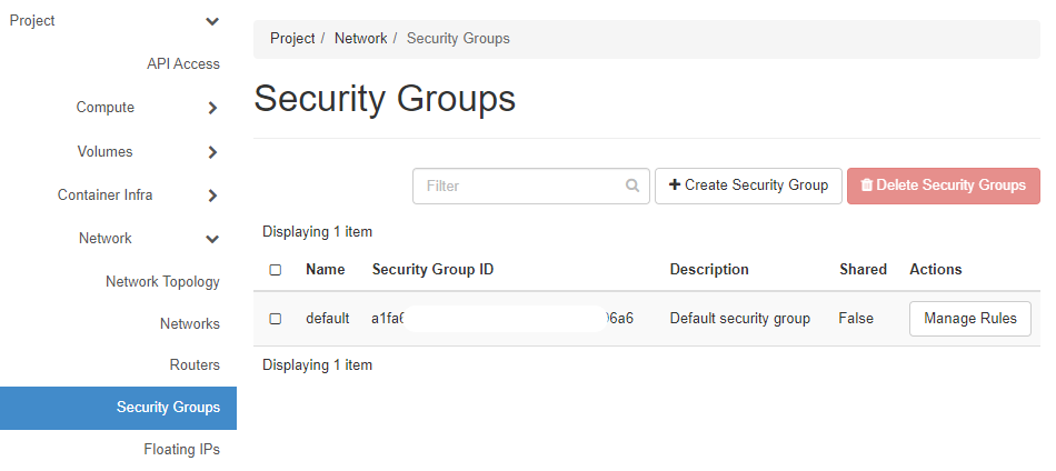 1. Go to Project > Network > Security Groups and click on Manage Rules, for the default security group.