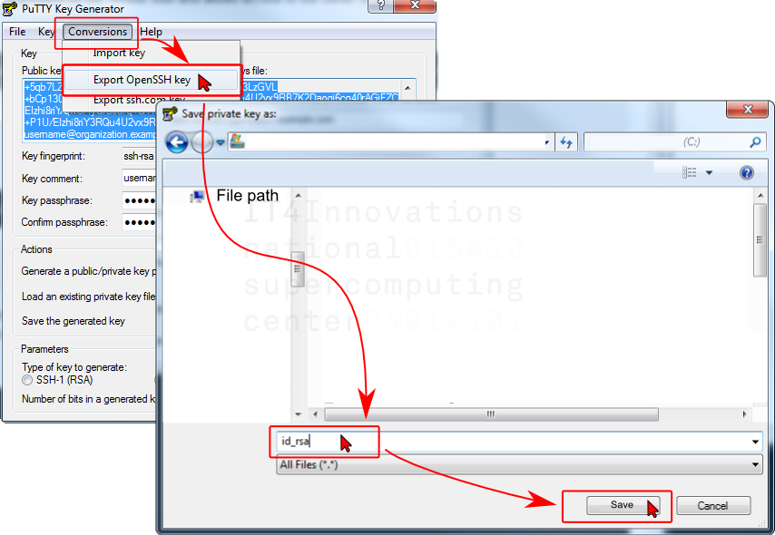 - Export the private key in the OpenSSH format "id_rsa" using Conversion - Export OpenSSH key