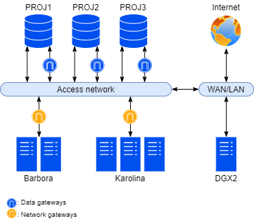 PROJECT file storages are accessible at mountpoints /mnt/proj1, /mnt/proj2, and /mnt/proj3.
