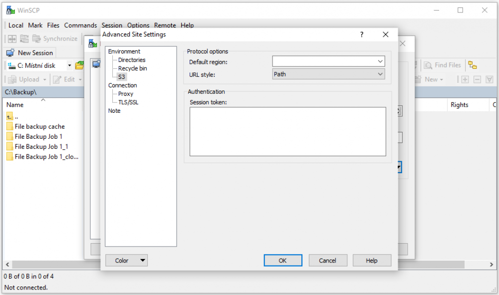 Then insert Host name s3.clX.du.cesnet.cz where replace X with the number of the cluster associated with your S3 account. Port 443 will be pre-filled automatically. Copy access_key into the field Access key ID and secret_key into the Secret access key - you received both of these keys encrypted from the administrators.