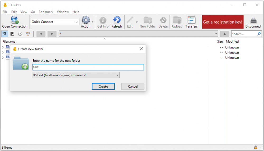 The you can create a bucket - in the main directory can be only directories (buckets).